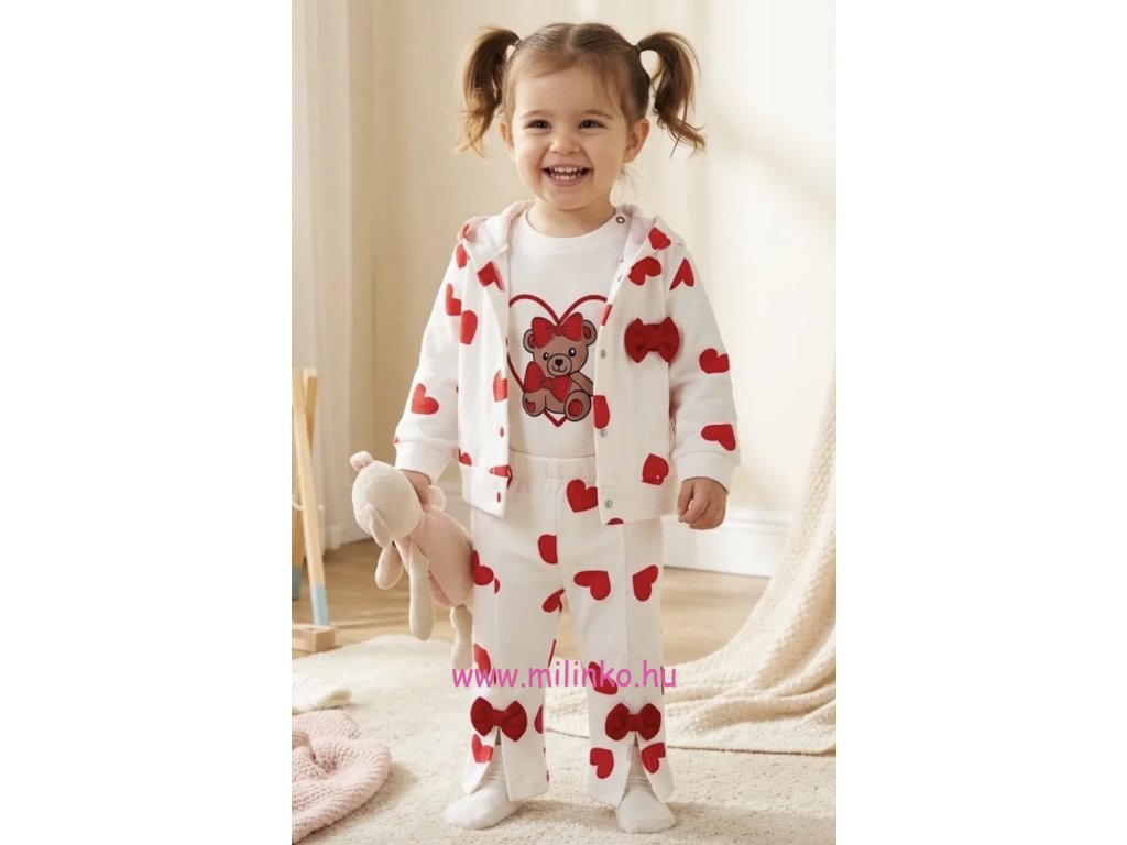 Stílusos, török márkájú gyerek szett, amely tökéletes választás átmeneti időszakra, tavasszal vagy ősszel. Minőségi kidolgozásának és kellemes anyagának köszönhetően egész napos kényelmet biztosít.