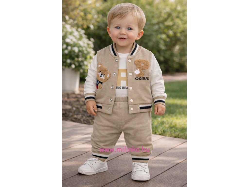 3részes babaruha szett . A szett melegítő felsőből, nadrágból és egy hosszú ujjú bodyból áll.