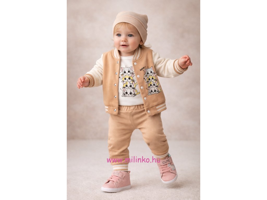 3részes babaruha szett . A szett melegítő felsőből, nadrágból és egy hosszú ujjú bodyból áll.