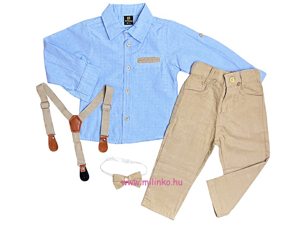 4részes elegáns fiús gyerekruha szett - kék-bézs