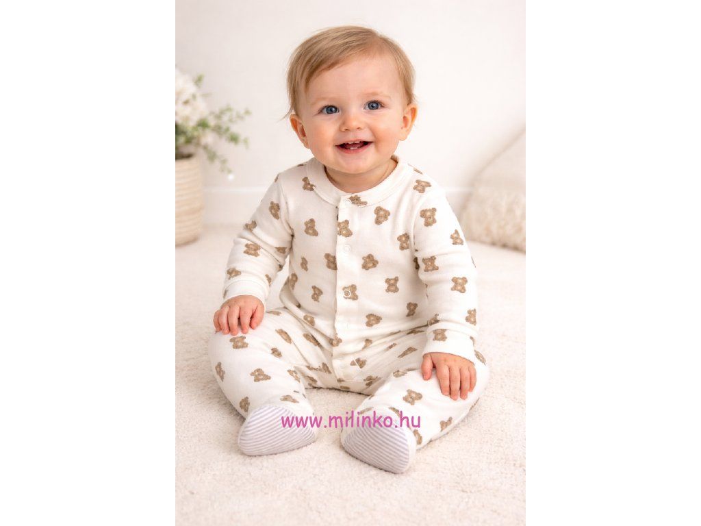 Aranyos, hosszú ujjú babarugdalózó ideális választás mindennapi viselethez és alváshoz. 100% pamutból készült, amely puha, légáteresztő és kíméletes a baba érzékeny bőréhez. A praktikus patentos záródás megkönnyíti az öltöztetést és a pelenkázást.