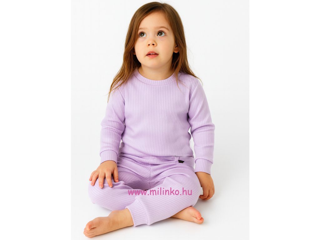 2 részes kislány pamutszett Cool Baby márkától. Hosszú ujjú felsőből és hosszú nadrágból álló bordás pamutszett halványrószaszín színben. Nadrág gumírozott derékkal.