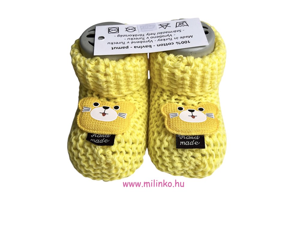 Horgolt cipőcske - Maci, sárga