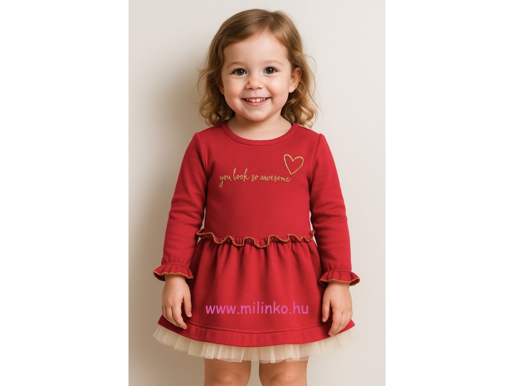 Hosszú ujjú kislány ruha- Csodálatosan nézel ki, piros