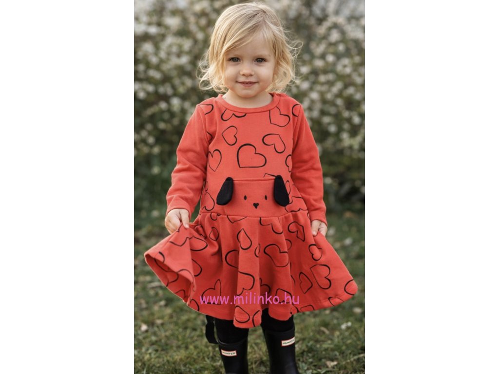 Hosszú ujjú kislány ruha- Kutyus, lazacszín