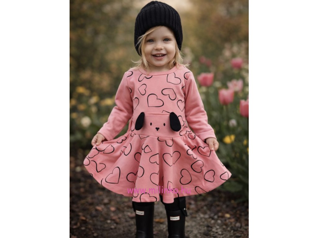 Hosszú ujjú kislány ruha- Kutyus, rózsaszín
