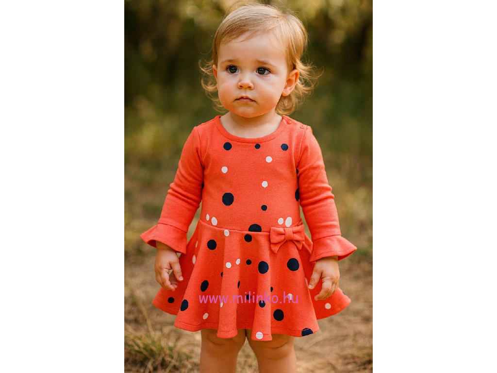 Hosszú ujjú kislány ruha- Pöttyök, lazacszín