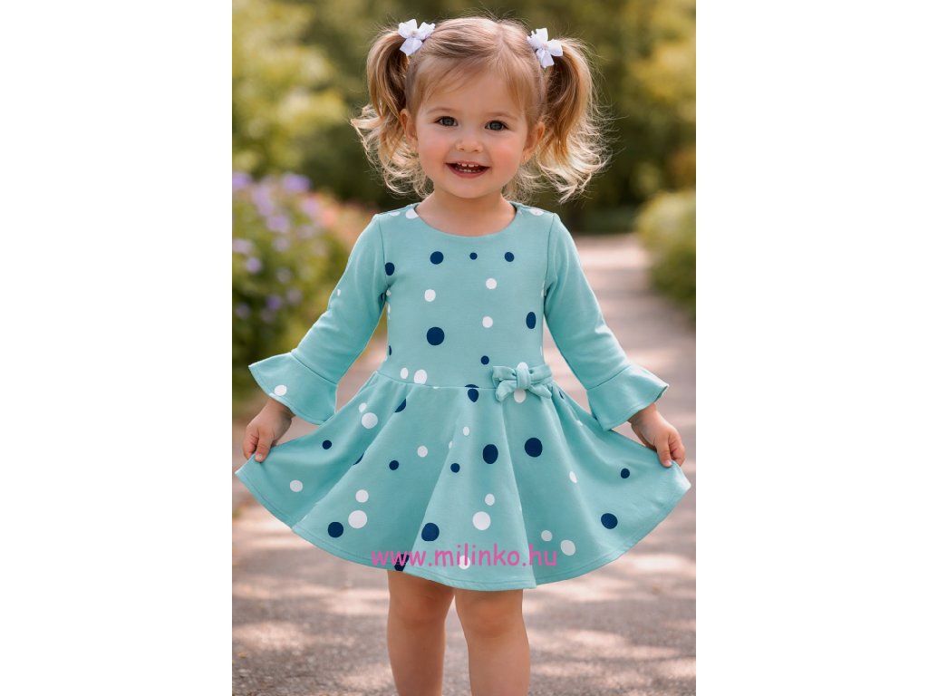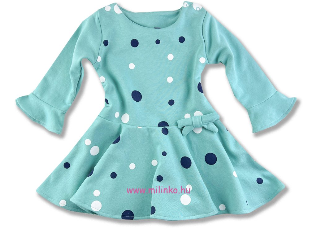 Hosszú ujjú kislány ruha- Pöttyök, türkiz
